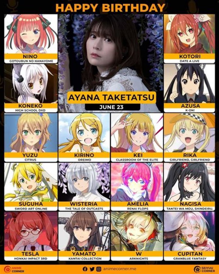 On Popular Bio, She is one of the successful Voice Actress. She has ranked on the list of those famous people who were born on June 23, 1989. She is one of the Richest Voice Actress who was born in Japan. She also has a position among the list of Most popular Voice Actress. Ayana Taketatsu is 1 of the famous people in our database with the age of 30 years old.