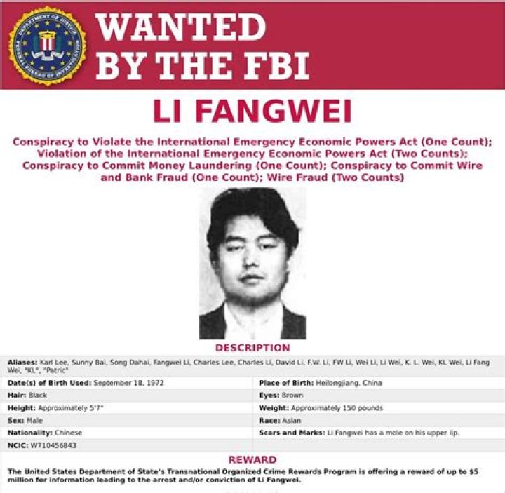 Li Fangwei is still at large as of right now, and the U.S. Department of State is offering a reward of up to $5 million for any information that leads to his capture or conviction.