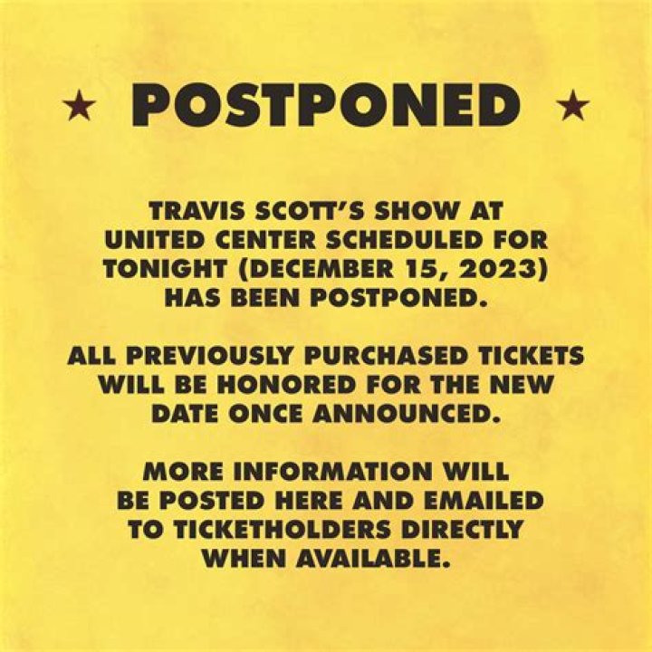 The concert was scheduled to take place at the United Center. The arena released a statement via social media after 4 p.m. on Friday, informing concertgoers about the cancellation. The statement read, “Travis Scott’s show at United Center scheduled for tonight has been postponed.”